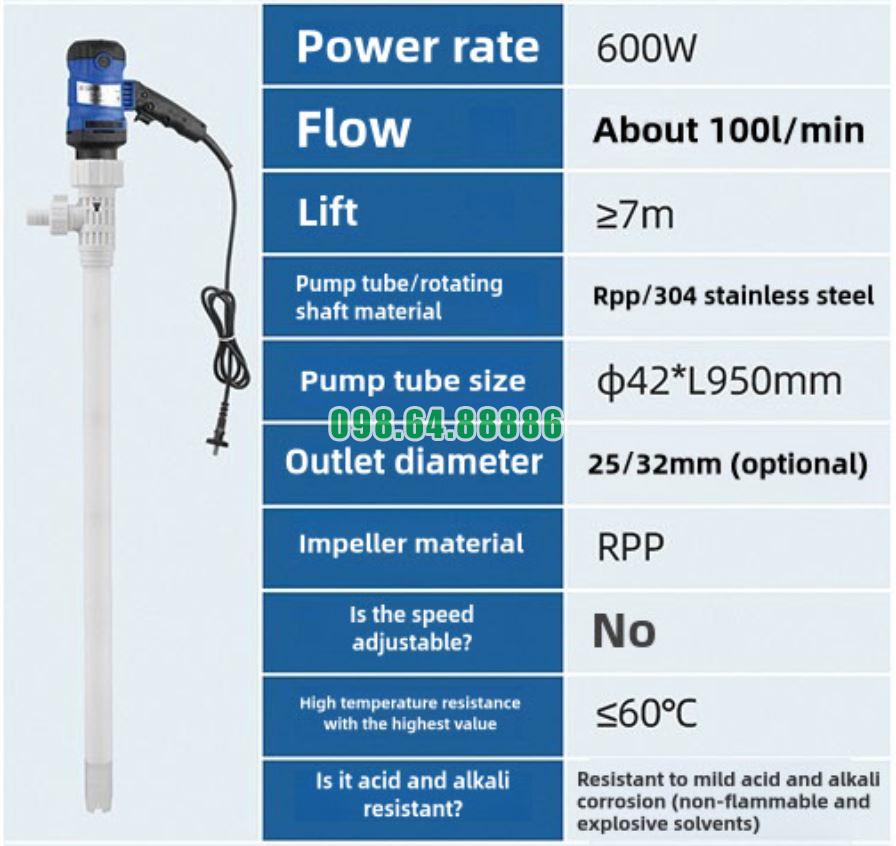 Bơm điện rút dầu và nước công nghiệp cao cấp JDT-600W-RPP