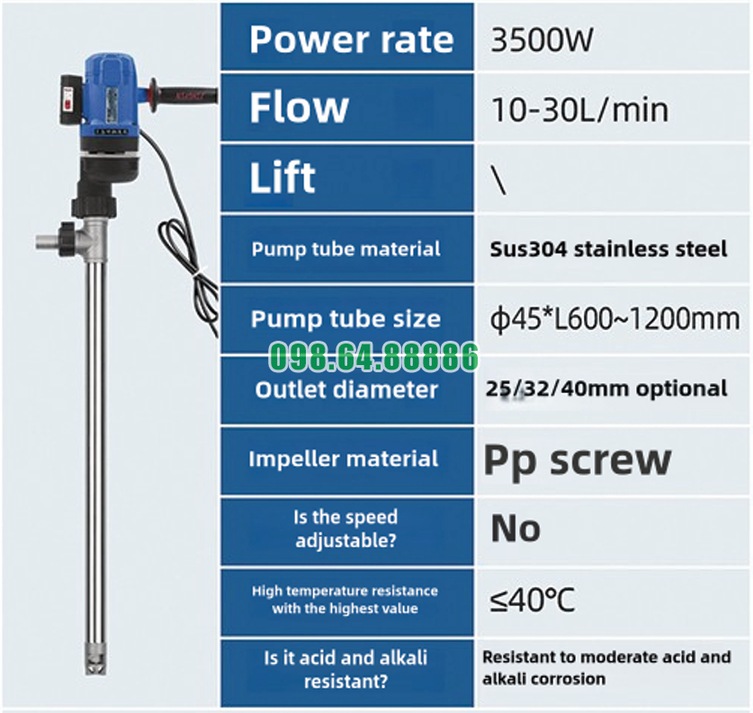 Công suất mạnh hỗ trợ bơm dung dịch đặc