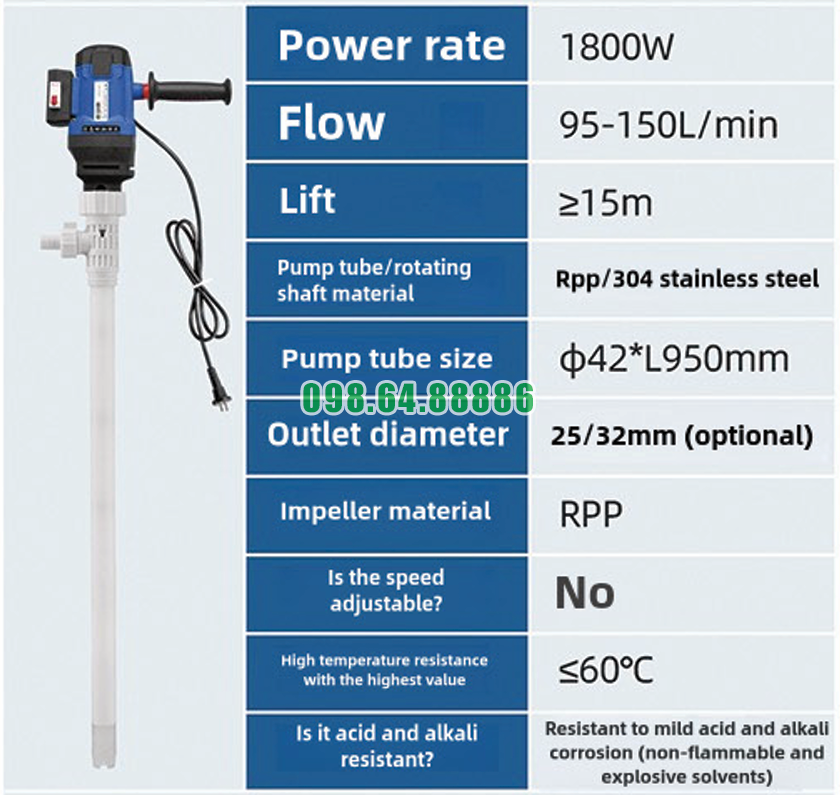 Trước đây, việc bơm chất lỏng từ thùng phuy thường cần nhiều công sức và thời gian nếu sử dụng phương pháp thủ công. Máy bơm chất lỏng điện cắm điện JDT-1800W-RPP giúp tự động hóa quá trình này, giảm đáng kể sức lao động của người vận hành.