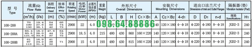 Máy bơm inline, bơm lùa, bơm thẳng trục đứng ISG100-200, IRG100-200 22kw, 100m3, 50m