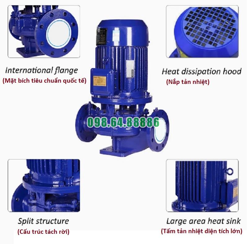 Máy bơm trục thẳng đứng, bơm đồng trục đứng ISG65-160B, IRG65-160B, 3kw